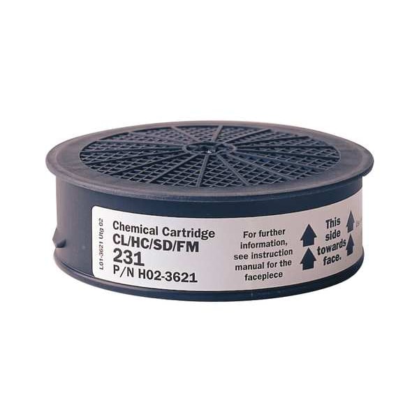 Cartridge, NIOSH Rating Chlorine (CL), Formaldehyde (FM), Hydrogen Chloride (HC), Sulfur Dioxide (SD), White, Compatible with Brand and Series Sundstrom SR 510, Respirator Cartridge Type Air Purifying Respirator, Respirator Connection Type Push to Connect, Package Quantity 4