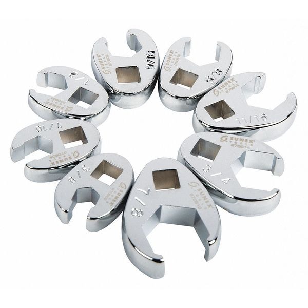 SAE Crowfoot Wrench Set,8 pcs.,3/8 In. Drve