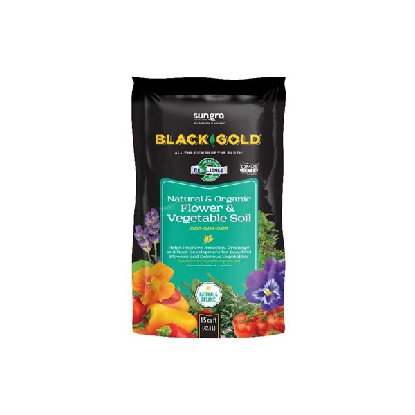 Black Gold, 15 CUFT, Natural Organic Flower Vegetable Garden Soil, Nutrient Rich Blend Of Bark, Compost, Canadian Sphagnum Peat Moss Forest Products, Formulated To Provide Rich, Organic Matter For Outdoor Planting Beds, Use For In Ground Planting Of Flowers, Vegetables, Fruits Herbs, Omri Listed, Bag