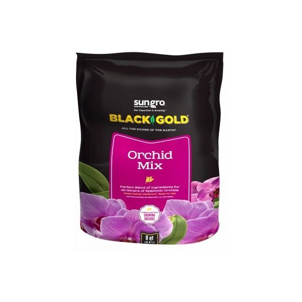Black Gold, 8 QT, Orchid Mix, Commercial Grade, Well Blended Combination Of Small Fir Bark, Canadian Sphagnum Peat Moss, Perlite Screened Pumice, With Lime Added To Create A Balanced pH, It's Ready To Use Recommended For Cymbidiums Other Orchids
