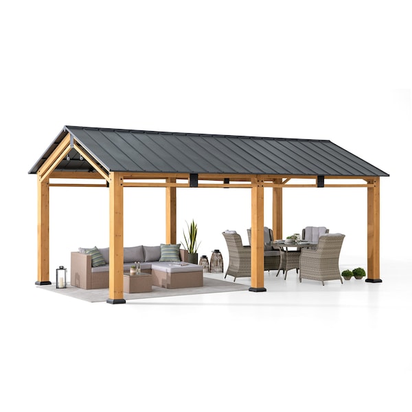 - Versatile & Customizable: A movable ceiling hook is provided for this cedar wood carport for suspending lighting (not included) to illuminate your backyard evening gatherings.