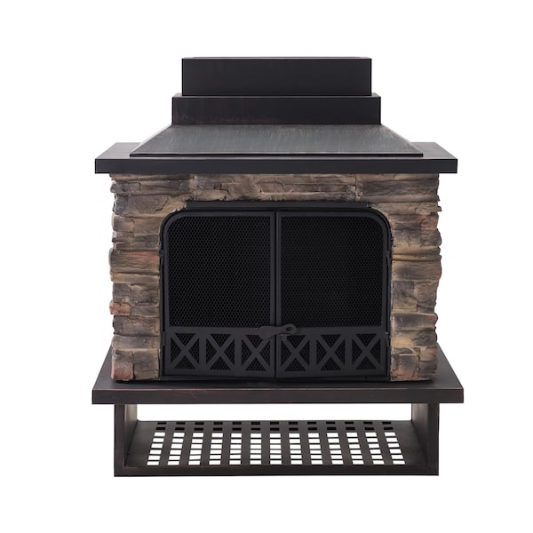 There's nothing quite like an evening outside, gathered around a fire. Make every night at home feel special with this outdoor wood-burning fireplace from Sunjoy, the world's leading ready-to-assemble outdoor structure maker. Made of manufactured stone and powder-coated steel, this classic design is sure to complement any outdoor setting. Unlike open firepits, the smoke from this fireplace is directed up and away via the functional chimney while a mesh screen provides protection from embers and sparks. The removable grate makes ash clean up easy. Curl up for a cozy evening beneath the stars or invite friends and family over to roast marshmallows. Either way, you'll enjoy gathering around this fireplace for years to come.