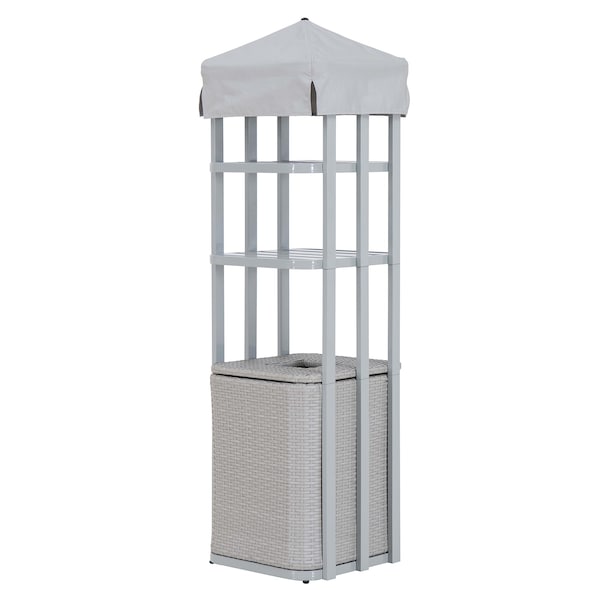 Introducing the Pickford Pool Towel Valet Tower in a sleek navy blue finish. This versatile pool storage solution offers two spacious shelves and a handy storage basket, ensuring ample room for all your poolside essentials. Crafted with waterproof, hand-woven rattan and a reinforced aluminum frame, it effortlessly tackles your storage challenges with style. No more dust worries, thanks to the included dustproof top cloth and four secure straps. Protect your floors with the plastic feet at the bottom. Elevate your pool area with this elegant and practical addition.