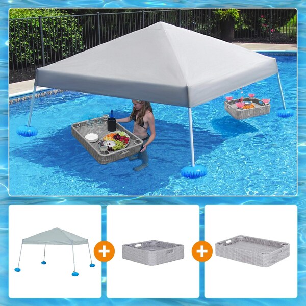 Pool Gazebo with 2 size wicker floating pool tray-Gray