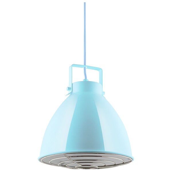 Add a pop of color to your space with this Zed 10in. decorative pendant light fixture from Sunlite. It features a baby blue finish with matching 4-foot adjustable length cord and 4.7-inch round base. A decorative chrome grille covers the bottom of the canopy. One medium base socket bulb not included, 60W max that can be used with a variety of decorative bulb shapes. Use with an LED bulb for an energy efficient lighting solution. This pendant fixture can be dimmed with used with a dimmable bulb and compatible dimmer. For use on 120-volt electrical service. Mounting hardware and installation instructions included. Canopy measures 10 inches in diameter by 10 inches high. This fixture is UL Listed for safety and quality.