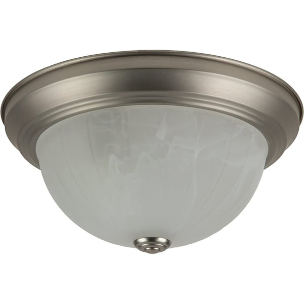 Simple and elegant are two words that best describe this brushed nickel dome fixture. It features alabaster-like glass, 11-in diameter, and its two lamp design uses 60W max bulbs. This classic design is a favorite for residential applications.