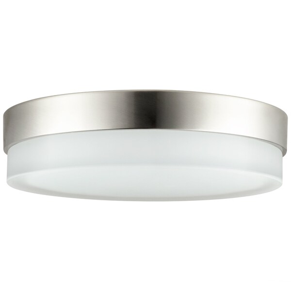 Contemporary design meets modern technology in the Modern Round Flush Mount Ceiling Light Fixture from Sunlite. The decorative brushed nickel base houses a frosted glass lens for even light distribution. The modern half glass and contemporary half band fixture will add a beautiful touch to any room. These dimmable fixtures let you pick the color temperature during installation. Using a switch within the fixture, you can choose between 2700K Warm White, 3000K Warm White, 3500K Neutral White, 4000K Cool White, or even 5000K Daylight depending on your preferences. Integrated dimmable LEDs use only 20 watts of electricity while putting out 1000 lumens of light equal to a 100-watt fixture. Maintenance free with no bulbs to replace. The lighting output can be changed when connected to an LED-compatible dimmer switch allowing it to adapt to any lighting to suit the mood. ETL Listed for wet location installation. Ideal for Office, Bedrooms, Kitchens, Hallways, Bathrooms, and more. Mounting hardware and installation instructions included.