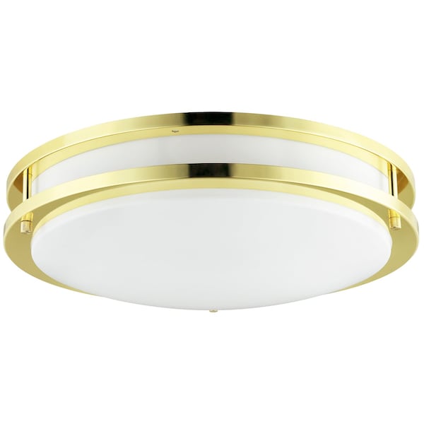 18in. Fluorescent Double Band, Two Bulbs Included, 2700K Polished Brass Flush Mount Fixture