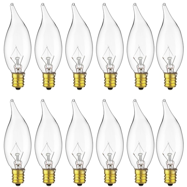 Sunlite lighting 12 pack classic incandescent petite chandelier lamps deliver a beautiful beam of crystal clear light to any setting while only utilizing 25W of energy to produce a comfortable 3200K light. Ideal for a wide range of settings in part to not containing the hazardous chemical, mercury, that's commonly found in competing bulbs. Featuring a candelabra E12 base, these lamps were meticulously designed to fit in a variety of applications. With an average lamp life of 1500 hours, Sunlite lighting's petite chandelier bulbs do more than just illuminate a room; these bulbs add a layer of life to any and all dcor.