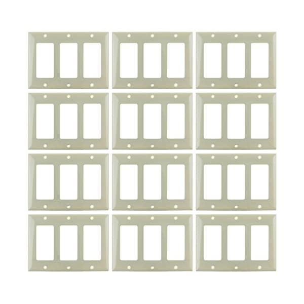 3-Gang Decorative Ivory Switch/ Receptacle Plate Plastic Matching Screws Included UL Listed, 12PK