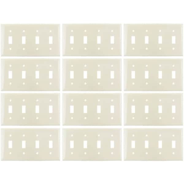 4-Gang Toggle Switch Plate Plastic, Matching Screws Included, UL Listed, Ivory, 12 Count, 12PK