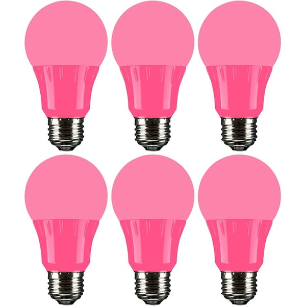 LED A19 Colored Light Bulb, 3 Watts 25w Equivalent, E26 Medium Base, Non-Dimmable, UL Listed, Party Decoration, Holiday Lighting, 6 Count, Pink