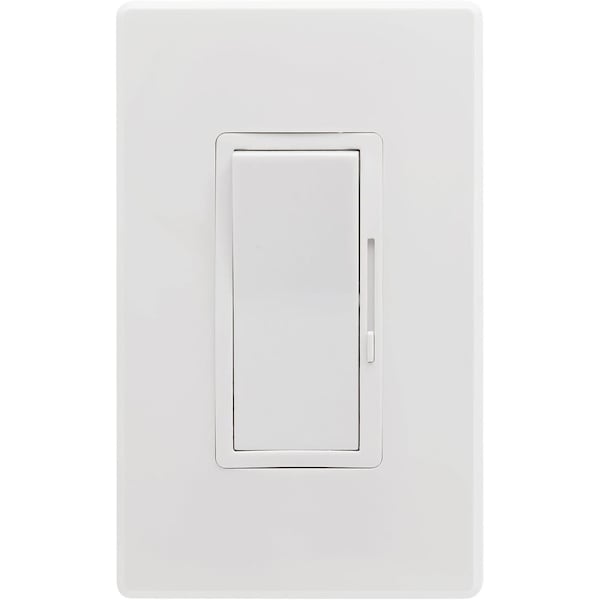 LED Dimmer Switch Wall Rocker Style Slide Bar Single Pole or 3-Way Switching White Wallplate, 4PK