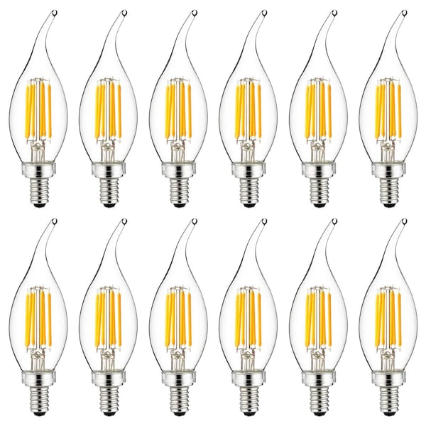 LED Flame Tip 5W 60W Equiv E12 Base Clear Dimmable 2700K Filament Chandelier Light Bulb, 12PK