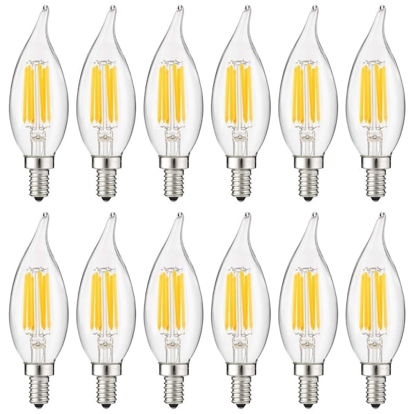 LED Flame Tip 5W 60W Equiv E12 Base Clear Dimmable 5000K Filament Chandelier Light Bulb, 12PK