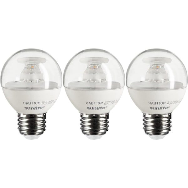 Upgrade your lighting with Sunlite Dimmable LED bulbs. With a G16 globe shape and medium E26 base they are an energy efficient replacement for 40 watt incandescent while only using 5 watts of electricity. They are instant-on at full 350 lumen brightness. With an average life of 25000 hours these long life bulbs need to be replaced less often. The estimated annual energy cost is a low $0.60 Based on 3 hr/day use at $0.11 per/kWh. These 2700 Kelvin warm white light bulbs provide a comforting warm glow that can be adjusted with a dimmer for perfect lighting. Color Rendering Index CRI of 80. They are cool to the touch even when lit making them perfect for vanity fixtures, decorative lamps, restaurants light and more. These bulbs are Energy Star rated and ETL Listed for dry location installation. Ideal for both residential and commercial use. Save time and money with Sunlite LED bulbs. Not for use in totally enclosed, recessed fixtures.