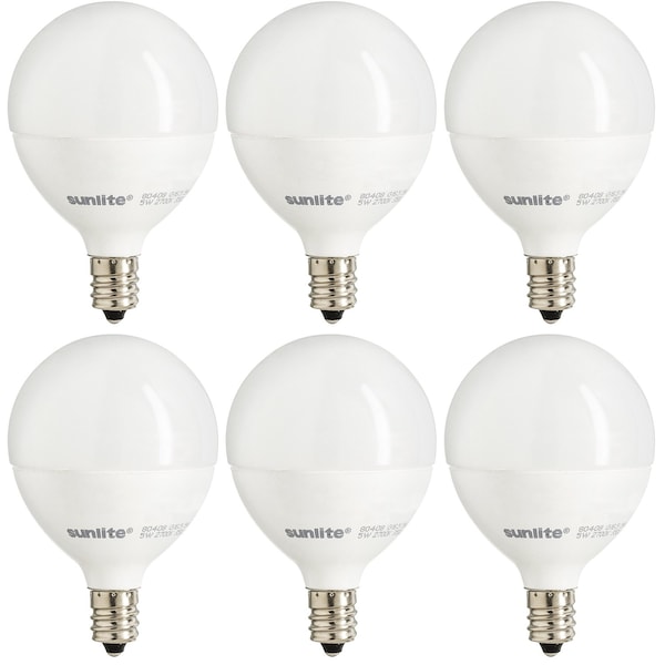 LED G16.5 Globe Light Bulb, 7W 60W Equiv, 500 Lumens, Dimmable, Candelabra E12, Frosted, 6PK