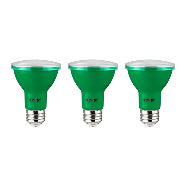 Sunlite LED household lamps are extremely energy efficient and will help get your monthly energy costs down to their bare minimum. These lamps can last up to thirty times as long as incandescents thereby reducing the hassle of replacements. Sunlite LED lamps contain no mercury elements and do not release any hazardous gasses so, by using these lamps you get to do a little more to protect our environment and now you no longer need to worry about how to dispose of your bulb when a bulb breaks. Lamp recycling is now easy, not as with compact fluorescent lamps and its hazardous gasses. You wont lose out on light output or ambiance either; Sunlite LED bulbs deliver a high lumens-per-watt ratio and produce a bright, crisp light in a variety of colors. This Sunlite LED bulb features a medium base and can last up to 15,000 hours. It produces a vibrant green colored light. These LED PAR20 Colored Lamps will fit right into your living room or into the most cutting-edge, state of the art lighting design project.