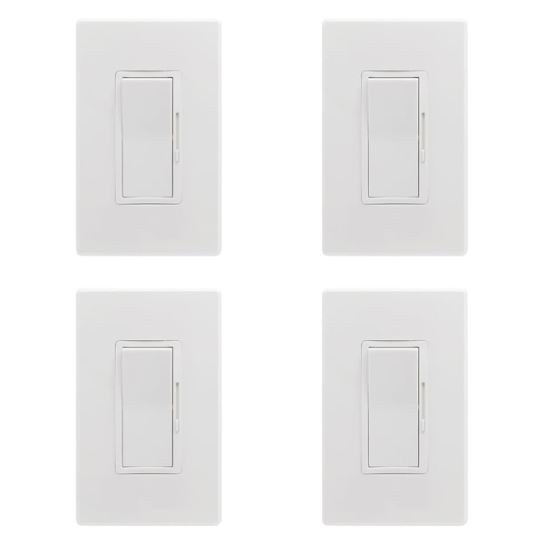 LED Wall Rocker Style Slide Bar Triac Dimmer Switch Wall Plates Single Pole/ 3-Way Switching, 4PK