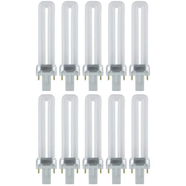 PL7/SP27K Plugin U-Shaped Compact Fluorescent Lamp, 7W, 360 Lumens, 2700K, 2-Pin G23 Base, 10PK