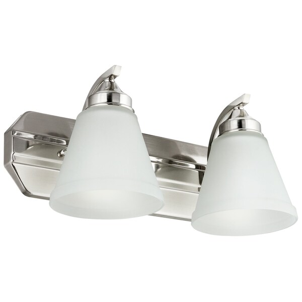 Vanity Fixture Bell Shaped Frosted Glass, 2 Lights, Brushed Nickel Finish