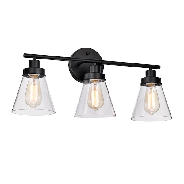 LED Vanity Light Fixture, 3 Light, Black Finish