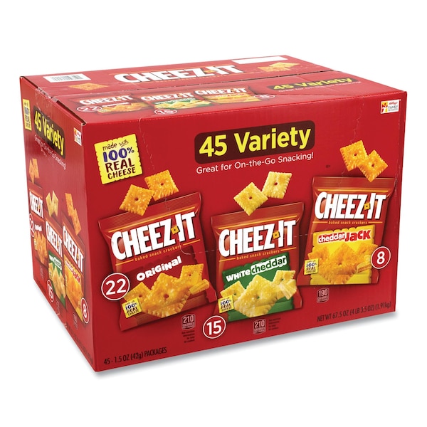 Cheez-It Crackers, Cheddar Jack/Original/White Cheddar, 1.5 oz, PK45 (Discontinued)