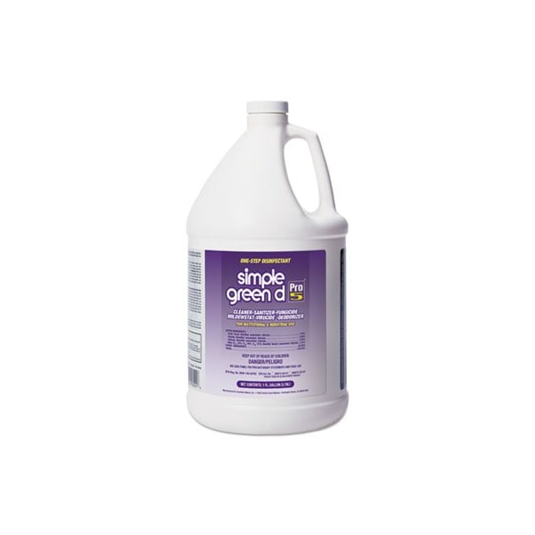 Simple Green d PRO 5 concentrated cleaner, deodorant, disinfectant, sanitizer, fungicide mildewstat, virucide. For institutional and industrial use. Kills the coronavirus SARS-Related Coronavirus 2 that causes COVID-19 and Cold & Flu Virus on hard, non-porous, non-food surfaces. Use in athletic facilities, bars and restaurants, bathrooms, business and office buildings, cafeterias, day care centers, food preparation areas, hotels, institutional kitchens, nursing homes, pet animal quarters, public restrooms, schools and colleges, USDA inspected food processing facilities, and more. Application: Disinfectant/Cleaner; Applicable Material: Ceramics; Enamel; Fiberglass; Laminates; Metal; Plastic; Porcelain; Stainless Steel; Tile; Chemical Compound: Quaternary Ammonium Chloride; Dirt Types: Bacteria; Dust; Fungus; Germs; Mildew; Mold; Soap Scum; Viruses; Water-Based Soil.