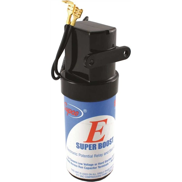 Hard starts relay and start capacitor combination, gives maximum torque possible for all single phase units from 1/12 through 10 HP. The simple 2 wire connection is Voltage sensing and has instant restart capability. A backup electronic timing circuit protects the compressor.Electronic potential relay EPR technology and 330 VAC start capacitorUL recognized file E146162Can be used on PSC and CSIR type compressorsVoltage sensing 90V-277V