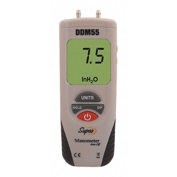Digital Monometer, Maximum Pressure -55 in Hg, Minimum Pressure 55 in Hg, Accuracy +/- 0.3 PercentFSO (25 Degrees C), Process Connection Size 1/8 in, Process Connection Type Hose Barb, Batteries Included Yes, Digital Display Features Backlit LCD, NIST Traceable Certificate No, Series Not Applicable