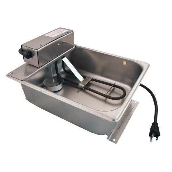 Condensate Evaporator Pan, Capacity 7 1/2 qt, Voltage 120V AC, 1,000 W Watts, 8.34 A Amps, Cord Length 3 ft, Pan Material Stainless Steel, 10 gal Dissipation Rate per Day, Length 13 in, Width 10 1/4 in, Height 4 in, Standards NSF Registered, UL(R) Recognized (# SA32471)