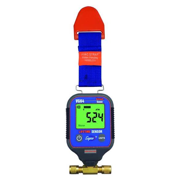 Vacuum Gauge, Digital, Measuring Range 0 to 19,000 Microns, Ambient Operating Range (F) 0 to 150, Connection 1/4 in Male Flare, Display 4-1/2 Digit LCD, Power Supply AAA (3), Not Included, Includes Hanging Hook, Removable Magnetic Strap