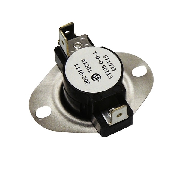 Limit Switch, Application Fan and Limit Control, Contact Form SPDT, Switch Action Open on Rise, Maximum Temperature Differential Setting 20 Degrees F, Input Voltage 240V AC, Switch Closing Temperature 120 Degrees F, Switch Opening Temperature 140 Degrees F, Product Type Temperature Control, Standards CSA, UL Listed, Contact Rating (AC) 25 A @ 240 V