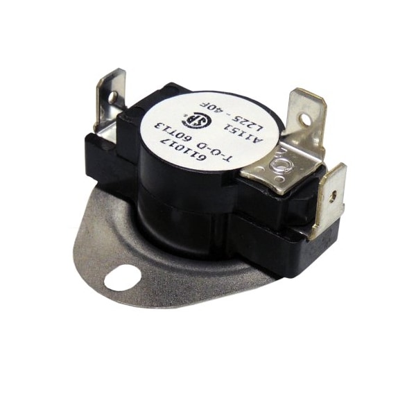 Temperature Limit Controller, Application Limit Control with Fan Bypass, Mounting Surface Mount, Contact Form SPDT, Switch Action Open and Close on Rise, Reset Type Automatic Reset, Switch Closing Temperature 185 Degrees F, Switch Opening Temperature 225 Degrees F, Input Voltage 240V AC, Mounting Base Length 2 in, Mounting Base Width 1 5/8 in, Product Type Temperature Limit Controller, Temperature Differential 40 Degrees F, Mounting Hole Center to Center Distance 1 5/8 in, Overall Width 1 5/8 in