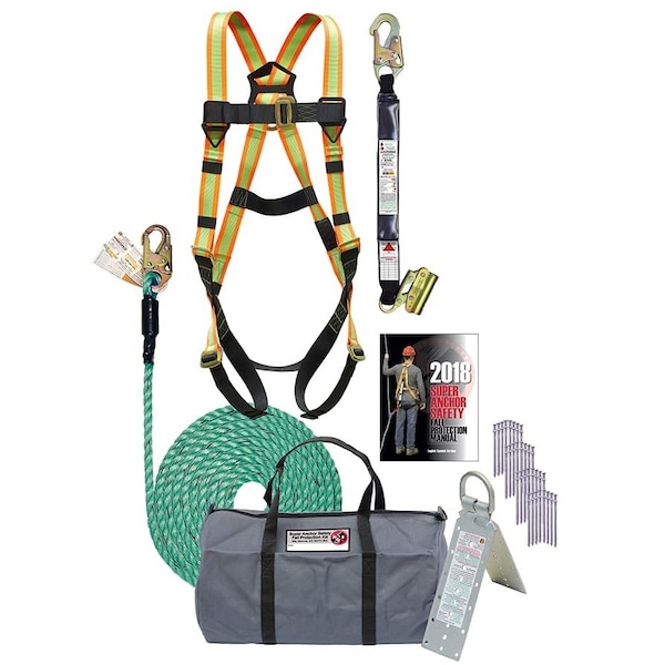 No. 4083-50+No. 6069 5pt Universal Size Hi-Viz Harness+No. 3004 Energy Absorber w/No. 4015-M Rope Grab+No. 3013-D Hinge-2 Anchor w/36ct Duplex Nails+No. 6003 Carry Bag