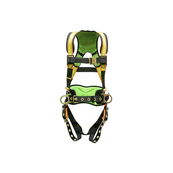 Small - Hi-Viz Webbing 3 D-ring Fall Arrester Harness w/Padded Back Frame & Waist Belt with 2 Side D-Rings. Tongue Buckle Utility Belt & Leg Straps.