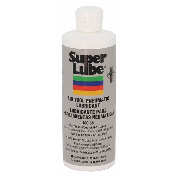 Air Tool Lubricant, ISO Viscosity Grade 161, SAE Grade 80W, Base Oil Synthetic, Container Size 16 oz, Container Type Bottle, NSF Rating H1, Min. Operating Temp. -40 Degrees F, Max. Operating Temp. 650 Degrees F, Viscosity Index 161, Flash Point 450 Degrees F, Pour Point -40 Degrees F, Color Translucent, Kosher Certified, NSF Registered H1
