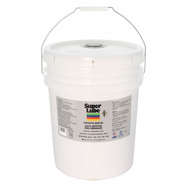Synthetic GearSynthetic Gear Oil ISO 150, Container Type Plastic Pail, Size 5 gal.SAE Grade 85W, Viscosity Index Greater Than 150, ISO Viscosity Grade 150Temp. Range -40 Degrees F to 450 Degrees F (-40 Degrees C to 232 Degrees C)Food Grade, Spur Gear, Helical, Herringbone, Rack And Pinion, Straight Bevel, Spiral Bevel, Worm Gears (E.P.), Chain Drive, Circulating Systems, High Temperature Chains, Oil Lubricated Bearings, Gear Boxes., H1