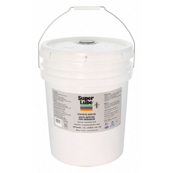 Synthetic GearSynthetic Gear Oil ISO 320, Container Type Plastic Pail, Size 5 gal.SAE Grade 90, Viscosity Index Greater Than 150, ISO Viscosity Grade 320Temp. Range -40 Degrees F to 450 Degrees F (-40 Degrees C to 232 Degrees C)Food Grade, Spur Gear, Helical, Herringbone, Rack And Pinion, Straight Bevel, Spiral Bevel, Worm Gears (E.P.), Chain Drive, Circulating Systems, High Temperature Chains, Oil Lubricated Bearings, Gear Boxes., H1
