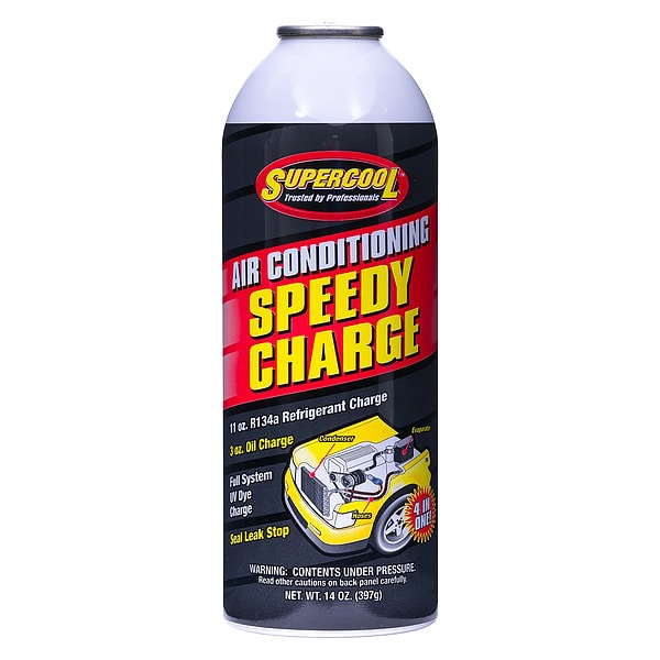 A/C 134a Charge and Ester Lubricant, Compatible Refrigerant Systems R-134a, Series Speedy Charge A/C Refrigerant, Container Type Can, Container Size 14 oz, Compatible Lubricant Ester Lubricants, Color Green, Yellow, PAG Viscosity Grade Not Applicable, Viscosity Index 100, Standards Not Applicable, Product Type Ester Oil Charge, Additives Included Lubricant, Stop Leak, UV Dye, Boiling Point -40 Degrees F, Features Leak Sealer, Flash Point 440 Degrees F