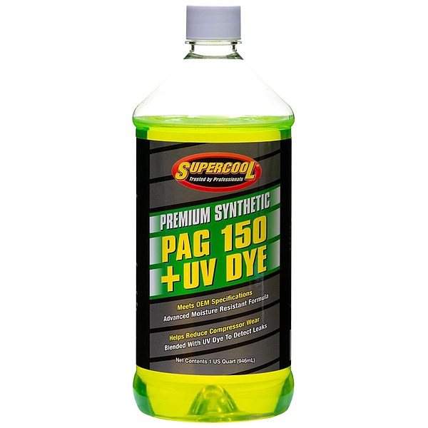 A/C Compressor PAG Lubricant, w/UV Dye, Compatible Refrigerant Systems R-134a, Container Type Bottle, Container Size 32 oz, Compatible Lubricant PAG Lubricants, Color Yellow, PAG Viscosity Grade PAG 150, Viscosity Index 150, Standards ANSI-ASHRAE 97-1989, ASTM D1401, ASTM D2270, ASTM D2783, ASTM D4052, ASTM D445, ASTM D92, ASTM D97, ASTM D972, ASTM D974, ASTM E203, FZG, Modified IP48, Product Type PAG Oil, Additives Included Anti-Wear Additives, UV Dye, Boiling Point 392 Degrees F