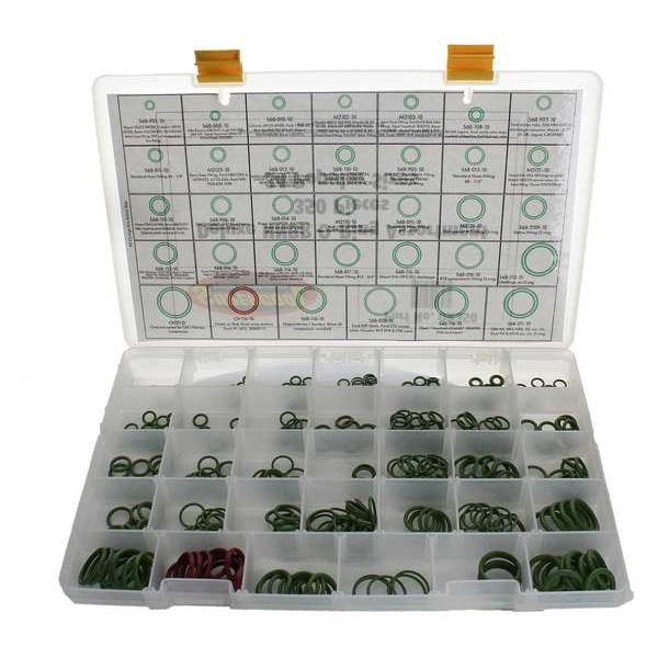 A/C O-Ring Assortment, Tool Type Universal O-Ring Assortment, Application Automotive A/C, For Use With R134a and R12 Systems, Material HNBR Rubber, Includes (34) Popular Sized O-rings, Number of Pieces 350