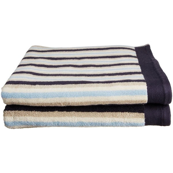 Collection Luxurious Stripes 100% Cotton 2-Piece Bath Towel Set-Blue