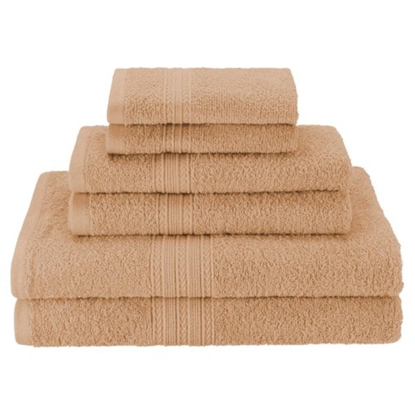 Eco-Friendly 100 Percent Ringspun Cotton Towel Set - Camel, 6 Pieces