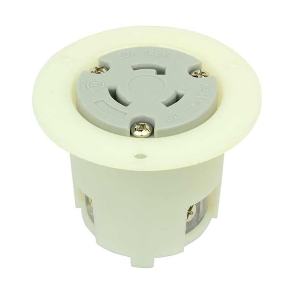 Flanged Locking Receptacle, L5-20R, 20 A, 125V AC, White
