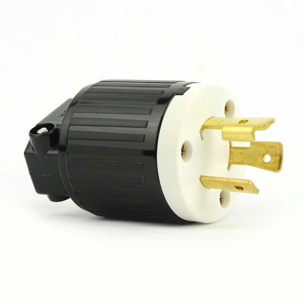 Locking Plug, L5-20P, 20 A, 125V AC, Screw Terminals, Black, White