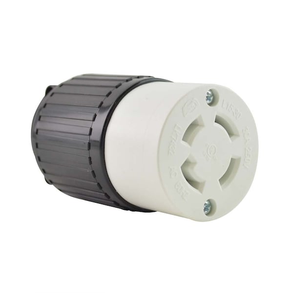 Locking Receptacle, L15-30C, 30 A, 250V AC, 4 Pole, Screw Terminals, Black, White
