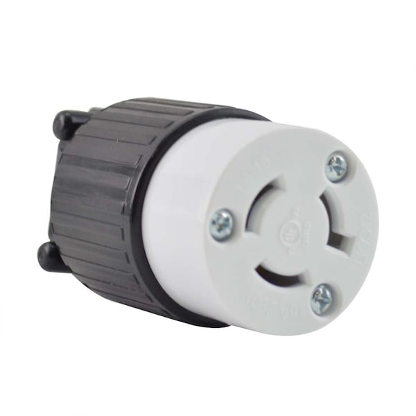 Locking Receptacle, L6-15C, 15 A, 250V AC, 3 Pole, Screw Terminals, Black, White