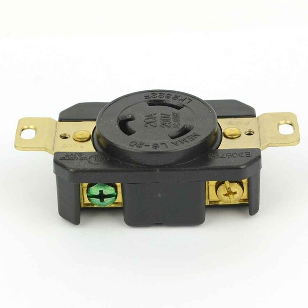 Superior Electric YGP023F Twist Lock Wall Mount Electrical Receptacle 3 Wire, 20 Amps, 250V, NEMA L6-20R.This Wall Mount Locking Receptacle is used for Gasoline generators, large and small mechanical and electrical machinery.Twist lock feature makes for a more reliable connection in industrial and commercial applications where sudden movement and incidental impact can disconnect the non-locking plug.
