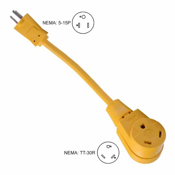 Plug Adapter, TT-30R, 5-15P, 1 ft., Yellow